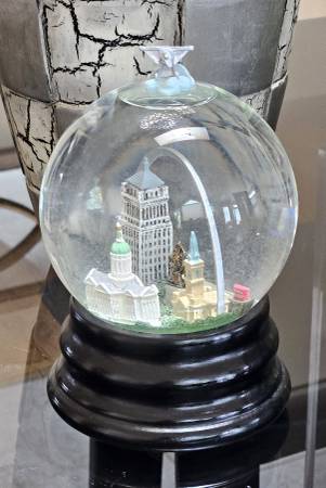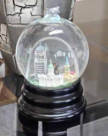 This Crystal Ball measures 8" tall and 15" diameter of the globe. It shows that magnificent and iconic Arch of St. Louis and all the details of the area in Downtown. Shake it and will snowflakes falling down inside the globe! Also, you can listen to the great music, winding it at the bottom. When you see it you would fall in love with it!! I have it for 30+ years