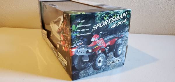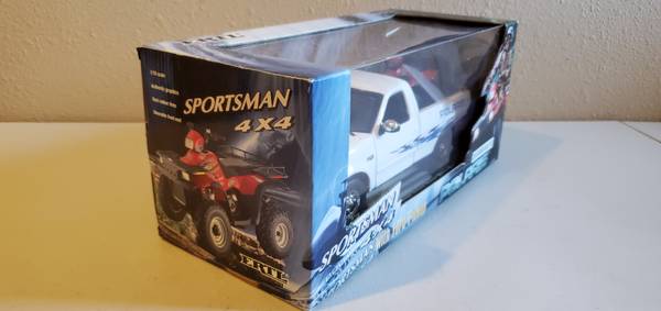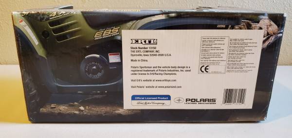 Polaris Sportsman 4x4 ATV in the bed of a Ford F-150 pickup truck, 1:18 Ertl diecast. Vehicles are brand new in the box, which does not appear to ever have been opened. The box has very minor scuffs...