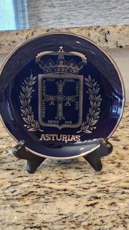 This Round Glass is from Spain and measures 6" diameter. It comes with a wood stand. Asturias is a Province of Spain, and it in the north, by the Cantabric Sea. It is Royal blue color and the...