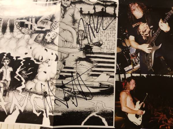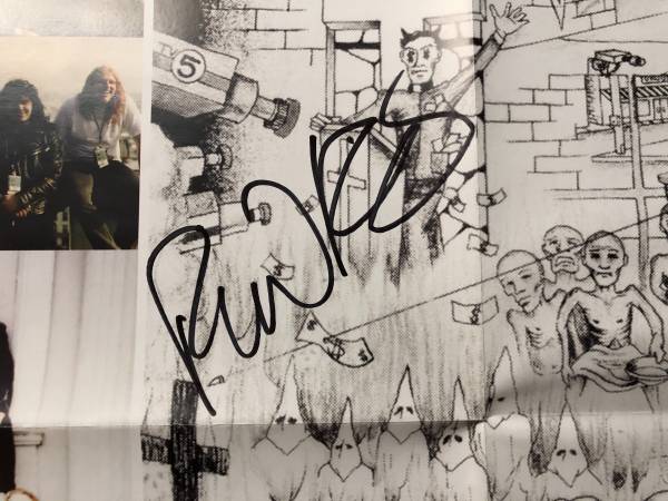For sale is a full original band signed Sacred Reich Ignorance vinyl foldout poster 24 x 22 insert from the reissue record. Signed by all 4 (Phil Rind, Wiley and Greg) and one had passed away since (Jason Rainey). COA provided by The Autograph Company.
