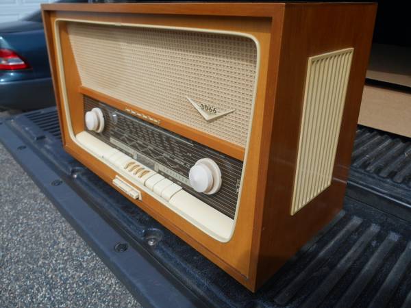Vintage 50's "Grundig" model 3066 multi band radio, this was brought back to the U.S. sometime in the 50's by my grandparents from a trip to Germany, so in the family since new, amazing condition and still works although it also could be a great visual display item for that MCM decor, size is 24"w x 14 1/4"h x 10"d, also included is the original owners manual/ paperwork and an auxiliary speaker, price is $325.00, call/ text Doug