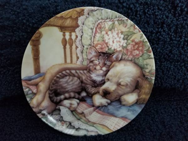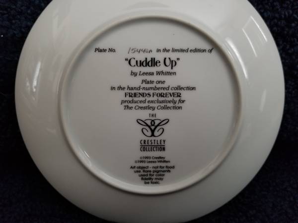 "Cuddle Up" (#15440 A) by Leesa Whitten. Plate #1 from the Fiends Forever Collection. Cocker Spaniel and kitten. Created by The Creastley Collection. Original box and Certificate of Authenticity included.