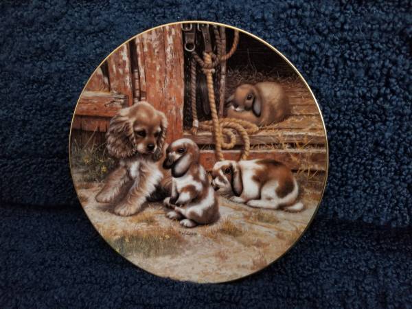 "Mistaken Identity (#4851B) by Jim Lamb. Cocker Spaniel and Bunnies from the Farmyard Friends Collection. Created by Hamilton Collection 1992. Original box and Certificate of Authenticity included.