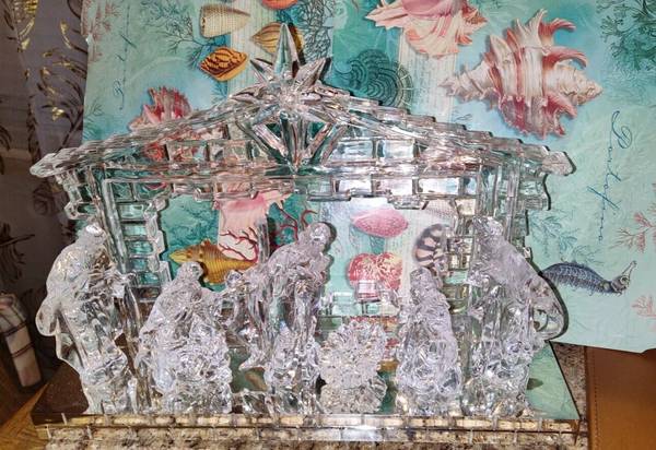 Clear Acrylic Lighted (3 AAA) Nativity Manger Scene 12 in. L x 8.5 in. H - $30