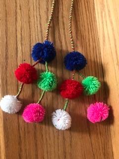 2 Pom Pom Garlands from Mexico Length of Each: 21 1/4 Inches Colors of Pom Poms on both: Blue, Green, Red, Pink, and White All for $8.00 CASH ONLY NO SHIPPING
