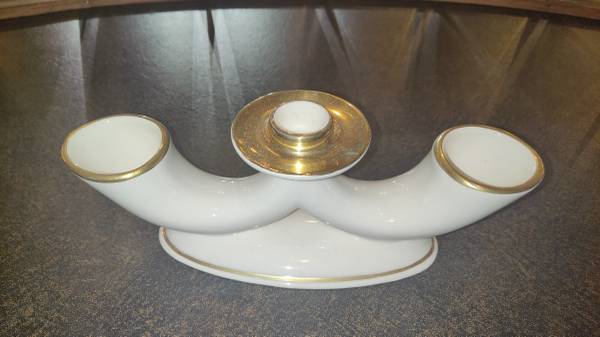 1) Wedding Vase (non-iridescent) with center candleholder and two ends for flowers - $15