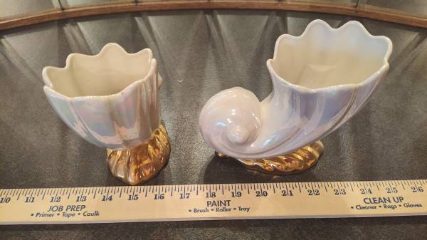 2) Shell Vases (iridscent) x2 - excellent condition - no flaws noted - $15 each or $27 for both