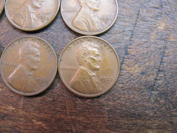 25 nice, original, Wheat Cents includes one rare 1922 "NO D" penny coin. 1922 No D (1) 1909 “VDB”s (7) 1912-S (3) 1914-S (2) 1916-D (1) 1923-S (1) 1933-D (8) 1933 (1) 1943-S (bright steel) (1) No...