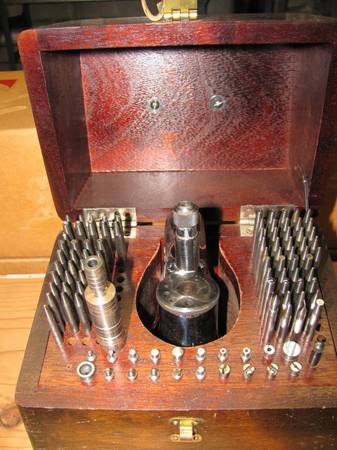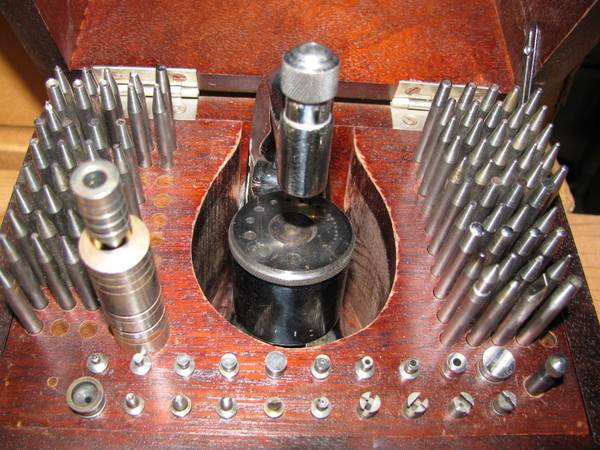 Vintage Kendrick & Davis Watchmakers Staking Tool Set K&D Series 600 in the original hardwood Case. Prime condition - clean and shiny – no rust Cash. No trades, delivery, or text messages.