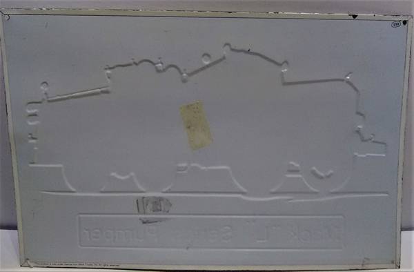 Sign is made of embossed steel and measures 17 1/4 inches wide by 11 1/2 inches tall.