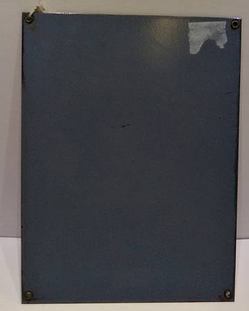 Sign is made of porcelain and measures 9 inches wide by 11 ¾ inches tall.