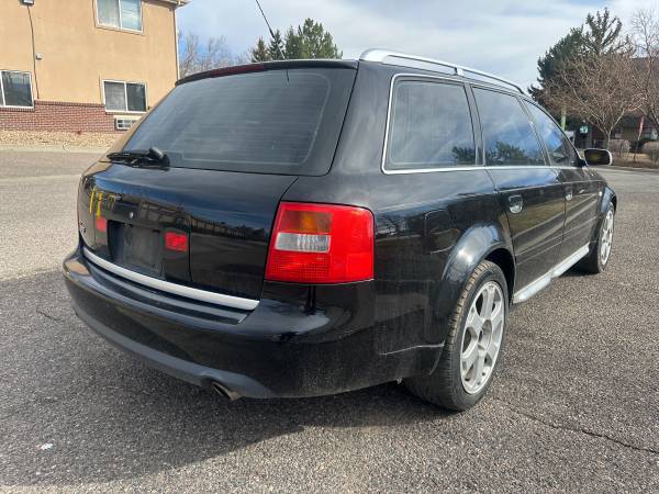We have up for sale a 2002 Audi S6 4.2 8cyl AWD with 163K MI. Car runs and drives but does have a check engine light on, does not effect drivability. Pretty clean exterior and interior for the year with good set of tires as well. Comes with bluetooth audio, and other features too. If interested feel free to contact me 303-881-9011.