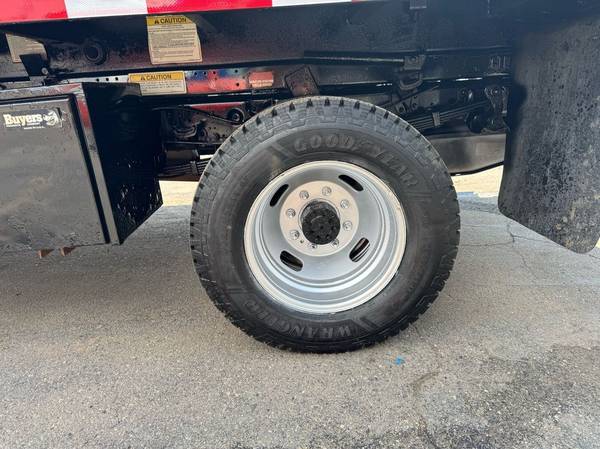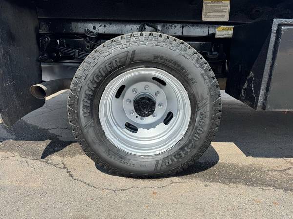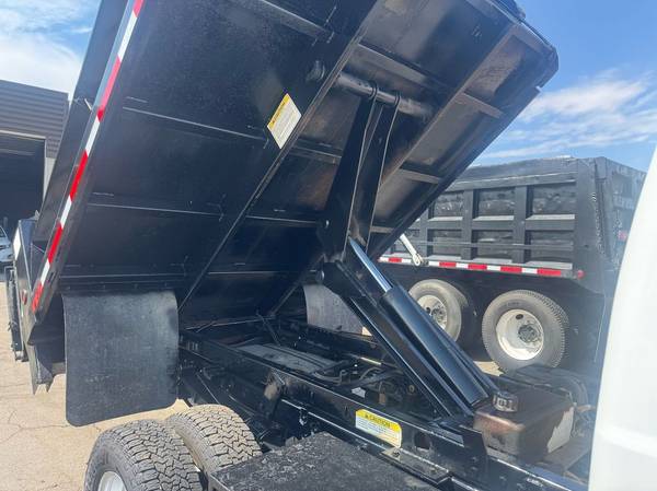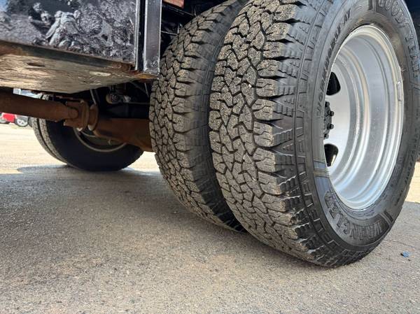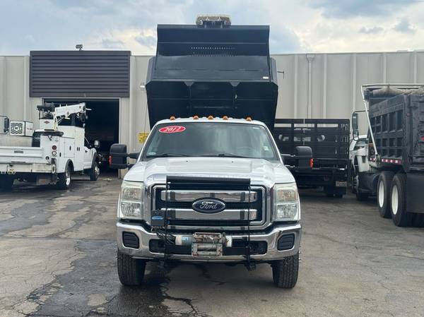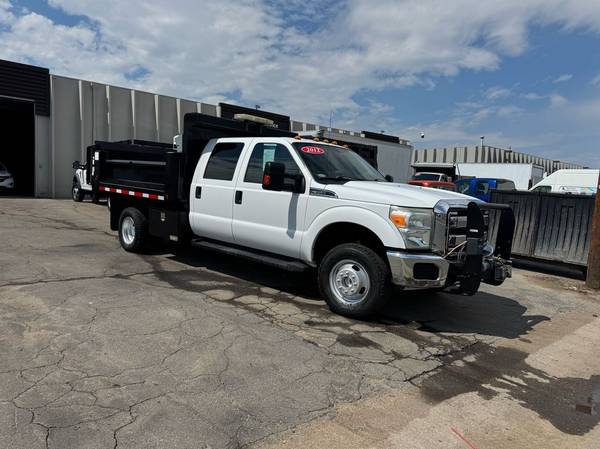 Features: Low Miles, Crew Cab, Scissor Hoist Dump Bed, Ramsey 6000lb Winch, Dual Rear Wheels, Cab Lights, Strobe Lights, Signal Integrated Mirrors, Heated Mirrors, Mud Flaps, Running Boards, Tow Package, Trailer Hitch, New Tires, Spring Suspension, Tilt Wheel, Power Steering, Power Locks, Power Windows, Power Mirrors, Manual Seats, Center Folding Seat, Four Wheel Drive, GVWR 13300lb, Front GAWR 5200lb, Rear GAWR 9750lb, 176 inch Wheelbase, Cruise Control, AM/FM, CD Player, MP3, Sync Auxiliary, Heat, Air Conditioning, Auxiliary Switches, Vinyl Floor, Cloth Seats, Rear Fold Up Seats