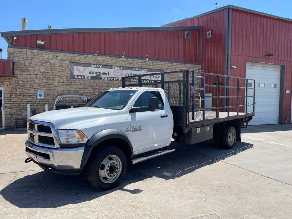 6.7L Cummins Diesel.. / Automatic Transmission / 4X4 / Vinyl Split Bench Seat (40/20/40) / Cruise Control / Power Windows / Power Door Locks / Power Mirrors / Cold AC / AM,FM,CD,Aux Stereo / 16'ft Steel Flatbed (16ft L x 8ft W ) / Dock Height 48" / Front Tow Hooks / GVWR: 19,500lbs, / Front Axle: 7,250lbs, / Rear Axle: 13,500 lbs. / 203' Wheelbase / Steel Wheels / Good Tires: (225/70 R19.5) and Much More !!