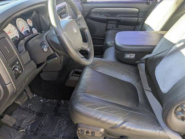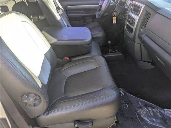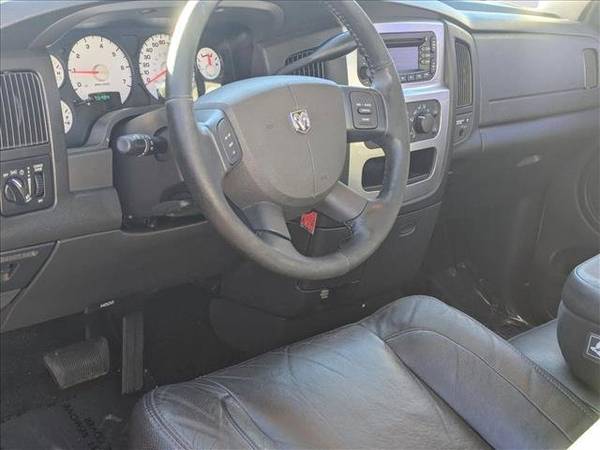 * Laramie Quick-Order Pkg * AM/FM Stereo W/CD Player; Gps Navigation System * 20" X 9" Chromed Aluminum Wheels * 5-Speed Automatic Transmission W/Od * 5.7L V8 Hemi "Magnum" Engine * Leather Seats * Four Wheel Anti-Lock Brakes * Navigation System * Trailer Tow Group * Supplemental Side Window Curtain Airbags * Two-Tone "Lower Break" Paint * Fog Lamps * Sliding Rear Window * Pwr Adjustable Pedals * Front Hood Protection Shield * Hd Engine Cooling * 750-Amp Battery * 3.92 Axle Ratio * Auto Dimming Rearview Mirror * Tow Hooks * Leather-Wrapped Steering Wheel * Chrome Wheels * Leather 40/20/40 Split Bench Seat * Monotone Paint * PowertrainThis vehicle includes a Money-Back Guarantee* and passed our precise inspection process. Best of all the price you see is the price you pay. No haggling. No back and forth. No pressure. And this price is so good it is guaranteed. *Money-Back Guarantee is valid for 5 days or 250 miles, whichever comes first. Subject to certain terms and conditions. See store for details. Some restrictions apply.Thank you for visiting another one of AutoNation Dodge Ram Arapahoe's online listings! Please continue for more information on this ONE OF A KIND 2004 Dodge Ram 1500 Laramie with ONLY 73,389 miles. This truck was sold at this very dealer when it was brand new! It has been extremely well cared for! This truck also includes a paint matched Tonneau Cover! This Dodge includes: 5.7L V8 HEMI MAGNUM ENGINE 8 Cylinder Engine Gasoline Fuel Leather power adjustable Seats 3.92 Rear Axle ratio Trailer Tow Group Radio 8.4 Nav *Note - For third party subscriptions or services, please contact the dealer for more information.* The 2004 Dodge Ram 1500 SLT Laramie's pros include a powerful engine option (like the Hemi or V10 in SRT-10), a large, comfortable cabin with ample room, and impressive towing and hauling capabilities. Its big rig styling is a major draw for many, and it offers a rugged and dependable workhorse with features that make it a near-luxury truck. Performance and capability Powerful engine options: Comes with strong engine choices, such as the available 5.7L Hemi V8 or even more powerful engines in performance models like the SRT-10. The base 4.7L engine also offers sufficient power for daily tasks and towing. Towing and hauling: The Ram 1500 is a very capable truck for towing trailers and hauling heavy loads, making it a versatile work vehicle. Payload capacities can be over 1,600 lbs depending on the configuration. Reliable: Many owners report the truck is reliable and long-lasting, with the original engine and transmission often holding up well over time. Interior and features Spacious and comfortable cabin: The Laramie trim offers a comfortable and spacious interior, especially in the Quad Cab models that can seat up to six people . Upscale features: This trim level is designed to be near-luxury, with many upscale features available. Design and durability Distinctive styling: The big rig styling is a major attraction for buyers who like a bold, large presence on the road. Durable and dependable: The truck is built tough and is considered a dependable workhorse that can last for a long time. Other pros Good value: While it may not hold its value as well as competitors, this can make it a good value on the used market. Head-turner: Its design is a standout, often drawing attention on the road. Take home this Dodge Ram 1500 Laramie, and you will have the power of 4WD. It's a great feature when you need to drive over tricky terrain or through inclement weather. One of the best things about this Dodge Ram 1500 is that it has low, low mileage. It's ready for you to truly break it in. Surprising quality accompanied by a high level of performance...this Light Almond Pearl Metallic on Dark Slate Gray Dodge Ram 1500 Laramie could end up being the perfect match for you.