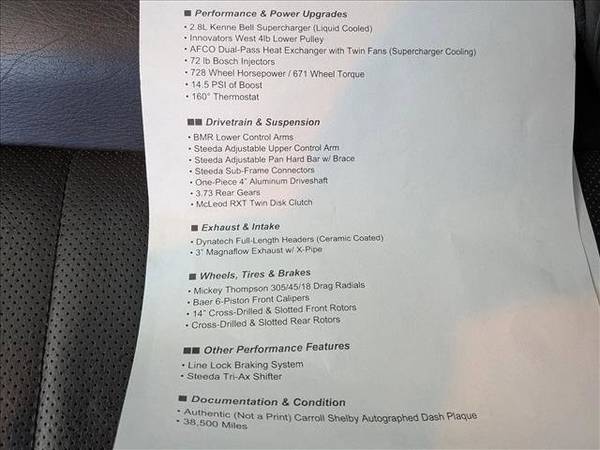 * Leather Seats * Rear Spoiler * 5.4L 32-Valve Supercharged V8 Engine * Solid PaintThis vehicle includes a Money-Back Guarantee* and passed our precise inspection process. Best of all the price you see is the price you pay. No haggling. No back and forth. No pressure. And this price is so good it is guaranteed. *Money-Back Guarantee is valid for 5 days or 250 miles, whichever comes first. Subject to certain terms and conditions. See store for details. Some restrictions apply.This Mustang Shelby GT500 has an upgraded Supercharger and is roughly 750 Horsepower. However this vehicle will not pass Colorado Emissions.
