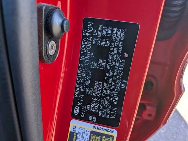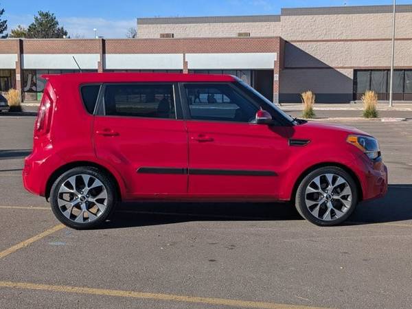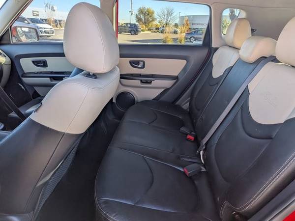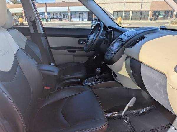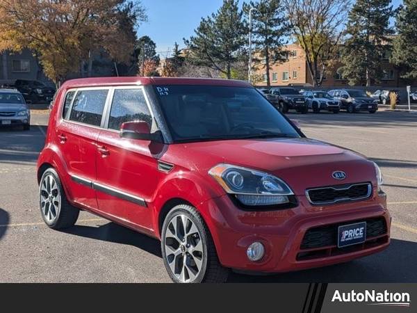 The following items have been reconditioned on this vehicle: new brakes and new battery! * Premium Pkg * Sun/Moonroof * Leather Seats * Navigation System * Electrochromic Rearview Mirror W/Compass & Homelink * Interior Lighting Kit * Rear Spoiler * Keyless Start * Cargo Cover * Cargo Net * Rear Bumper Applique * Rear Spoiler * Wheel Locks * Molten * Sand/Black Seat TrimContact AutoNation USA Denver Broadway today for information on dozens of vehicles like this 2012 Kia Soul !. This Kia includes: REAR SPOILER (PIO)Rear Spoiler SAND/BLACK SEAT TRIMINTERIOR LIGHTING KIT (PIO)CARGO COVER (PIO)Cargo Shade REAR BUMPER APPLIQUE (PIO)ELECTROCHROMIC REARVIEW MIRROR W/COMPASSAuto-Dimming Rearview Mirror Universal Garage Door Opener MOLTENWHEEL LOCKS (PIO)Wheel Locks PREMIUM PKGKeyless Start Immobilizer Navigation System A/C Climate Control Heated Front Seat(s) Power Door Locks Keyless Entry Leather Seats CARGO NET (PIO)*Note - For third party subscriptions or services, please contact the dealer for more information.*The incredibly low mileage and painstaking upkeep on this Kia Soul makes it a once-in-a-lifetime deal that won't last long! Call us today to reserve your test drive! Let's be honest, not everyone wants to set a course blindly into the dark. For those of us that don't, there are vehicles like this with stellar navigation systems.Added comfort with contemporary style is the leather interior to heighten the quality and craftsmanship for the Kia Soul !.More information about the 2012 Kia Soul:The 2012 Kia Soul is aimed squarely at the Scion crowd, with its funky styling, wild colors, personalized interior and exterior treatments, and kooky hip hop hamster advertising campaign. Improvements in performance and efficiency add tremendous value to the Soul, especially with a base price of $3,500 less than a comparable Scion.Interesting features of this model are affordability, good fuel economy, Spacious interior, improved power in both engines, and great warranty