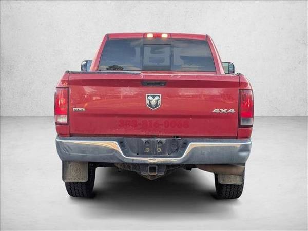The following items have been reconditioned on this vehicle: new brakes! * 6.7L I6 Cummins Turbo Diesel Engine * Black/Diesel Gray; Cloth 40/20/40 Premium Bench Seat * Uconnect 8.4A * 6-Speed Automatic Transmission W/Od * Anti-Spin Differential Rear Axle * Single Disc Remote CD Player * Black Pwr Trailer Tow Mirrors * Rear Window Defroster * Hd Snow Plow Prep Group * 220-Amp Alternator * Protection Group * Cold Weather Group * Engine Block Heater * Transfer Case Skid Plate Shield * Chrome Wheels * 17" X 8.0" Steel Chrome Clad Wheels * 2Fg Slt Customer Preferred Order Selection Pkg * 3.42 Axle Ratio * 50-State Emissions * Flame Red * Lt265/70R17E All-Season Owl Tires * Monotone PaintThis vehicle includes a Money-Back Guarantee* and passed our precise inspection process. Best of all the price you see is the price you pay. No haggling. No back and forth. No pressure. And this price is so good it is guaranteed. *Money-Back Guarantee is valid for 5 days or 250 miles, whichever comes first. Subject to certain terms and conditions. See store for details. Some restrictions apply.2013Ram2500 This Ram includes: 6.7L I6 CUMMINS TURBO DIESEL ENGINE *Note - For third party subscriptions or services, please contact the dealer for more information.* Put performance, safety, beauty, sophistication and all the right amenities into a car, and here it is! Now you can own luxury without the luxury price tag! Equipped with 4WD, this Ram 2500 SLT gives you added confidence to tackle the surface of any path you take. With complete historical records, you'll know your next pre-owned vehicle, like this one, inside and out before you purchase it. Clean interior? How about flawless. This Ram 2500 looks like has never been used. The paint on this car has no serious defects, blemishes, scratches or scrapes. More information about the 2013 Ram 2500: The big Cummins diesel 6-cylinder that's available in 2500 and 3500 HD models is unlike anything else on the market--with the attitude and torque curve of a tractor-trailer engine. It, plus a number of other upgrades for 2013, give the heavy-duty Ram 3500 editions an astonishingly high maximum tow rating of 30,000 pounds. Ram 2500 models are intended for the most extreme personal-towing needs, while the 3500 models are aimed at heavy commercial use by ranchers or construction crews. With diesel models' 10-percent gain in fuel efficiency, as well as other maintenance-related improvements, running costs should be down versus these trucks' predecessors. Even compared to the other latest heavy-duty trucks, the Ram 2500 and 3500 HD models have some of the best-appointed, most luxurious and most attractive interiors, picking up much of the look and some of the high-line materials from the latest light-duty Ram trucks. Strengths of this model include available Uconnect touch-screen connectivity and infotainment, choice of transmissions, improved fuel economy, the tow king, with ratings up to 30,000 pounds, luxurious new cabins, and Unparalleled torque and pulling power of Cummins diesel