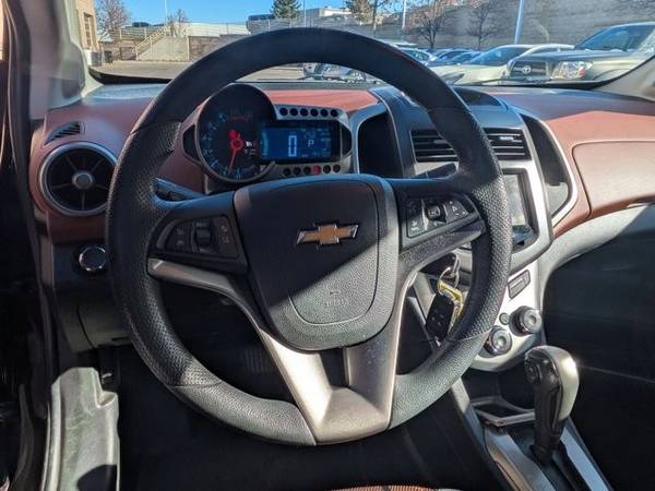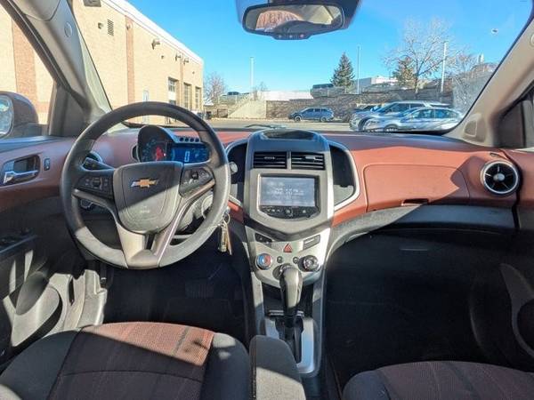 * Advanced Safety Package * Chevrolet Mylink Radio * Rear Vision Camera * License Plate Bracket; Front * 1Sd Preferred Equipment Group * Axle; 3.47 Ratio * Emissions; Federal Requirements * Engine; Ecotec 1.8L Variable Valve Timing Dohc 4-Cylinder Sequential Mfi * Forward Collision Alert * Jet Black/Brick; Deluxe Cloth Seat Trim * Lane Departure Warning * Mocha Bronze Metallic * Seats; Front Bucket With Recline And Height-Adjustable Headrests * Tires; P195/65R15 All-Season; Blackwall * Transmission; 6-Speed Automatic * Wheels; 15" (38.1 Cm) Painted AluminumThis vehicle includes a Money-Back Guarantee* and passed our precise inspection process. Best of all the price you see is the price you pay. No haggling. No back and forth. No pressure. And this price is so good it is guaranteed. *Money-Back Guarantee is valid for 5 days or 250 miles, whichever comes first. Subject to certain terms and conditions. See store for details. Some restrictions apply.This 2014 Chevrolet Sonic LT is offered to you for sale by Autonation Subaru West. A test drive can only tell you so much. Get all the info when you purchase a vehicle like this with a CARFAX one-owner report. The Chevrolet Sonic LT speaks volumes about it's driver, uncompromising individuality, passion for driving, and standards far above the ordinary. It's exceptional fuel-efficiency is a clear sign that not all vehicles are created with the same standards. This 2014 Chevrolet Sonic has such low mileage it has been parked more than driven. More information about the 2014 Chevrolet Sonic: The subcompact segment seems to get larger by the year, and the 2014 Sonic faces stiff competition from established players like the Ford Fiesta and Honda Fit. With its nimble chassis and turbocharged 1.4L engine -- the only turbo in its class -- the Sonic offers a spirited driving experience its rivals can't match. Sedan or hatchback body styles also give it the edge, and with a low entry price and plenty of convenience options just a click away, the Sonic stands out as a real bargain for shoppers on a budget. This model sets itself apart with available turbocharged engine, Aggressive styling, nimble handling, sedan or hatchback body styles, and fuel efficiency