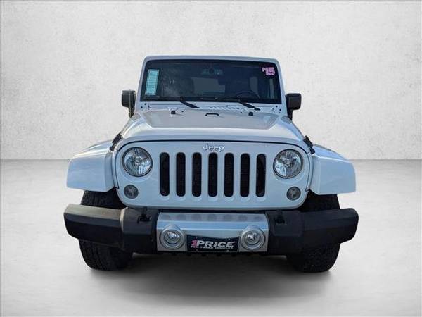 The following items have been reconditioned on this vehicle: new brakes! * Body Color 3-Piece Hard Top * Transmission: 5-Speed Automatic (W5A580) * Dark Saddle/Black; Leather Trimmed Bucket Seats * Radio: Uconnect 430N CD/Dvd/MP3/Hdd/Nav * Max Tow Package * Wheels: 18" X 7.5" 7-Spoke Polished Aluminum * 3.73 Rear Axle Ratio * Connectivity Group * Leather Seats * Remote Start System * Navigation System * Air Conditioning W/Auto Temp Control * Anti-Spin Differential Rear Axle * Heated Front Seats * Convertible Hardtop * Bright White Clearcoat * Engine: 3.6L V6 24V VvtThis vehicle includes a Money-Back Guarantee* and passed our precise inspection process. Best of all the price you see is the price you pay. No haggling. No back and forth. No pressure. And this price is so good it is guaranteed. *Money-Back Guarantee is valid for 5 days or 250 miles, whichever comes first. Subject to certain terms and conditions. See store for details. Some restrictions apply.2015JeepWrangler Unlimited With its full CARFAX one-owner history report, you'll know exactly what you are getting with this well-kept Jeep Wrangler Unlimited. This SUV gives you versatility, style and comfort all in one vehicle. With 4WD, you can take this 2015 Jeep Wrangler Unlimited Sahara to places roads don't go. It's all about the adventure and getting the most enjoyment out of your new ride. Low, low mileage coupled with an exacting maintenance program make this vehicle a rare find. More information about the 2015 Jeep Wrangler Unlimited: With standard 4-wheel drive, the classic Wrangler is one of the best SUV values available. The 6-speed manual transmission helps the Wrangler achieve a decent 17 mpg city and 21 mpg highway rating. Jeep considers the Wrangler's off-road prowess integral to the brand and they continue to make one of the most capable 4-wheel drive vehicles available. This model sets itself apart with 2- and 4-door configurations available, Iconic styling, and impressive off-road prowess