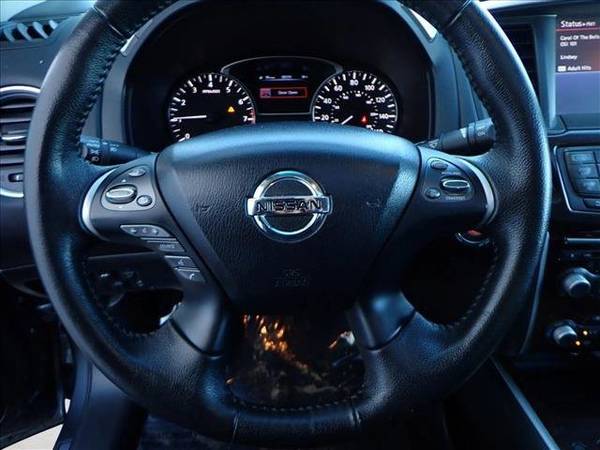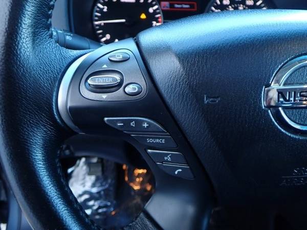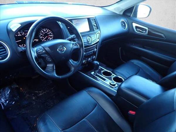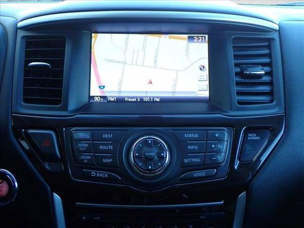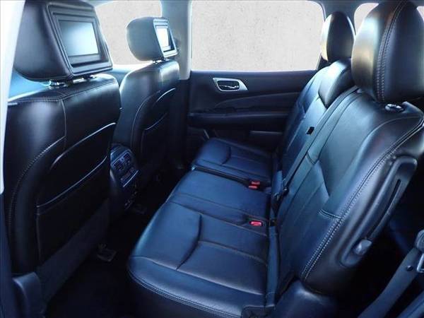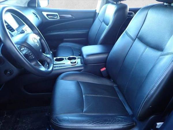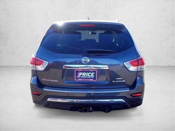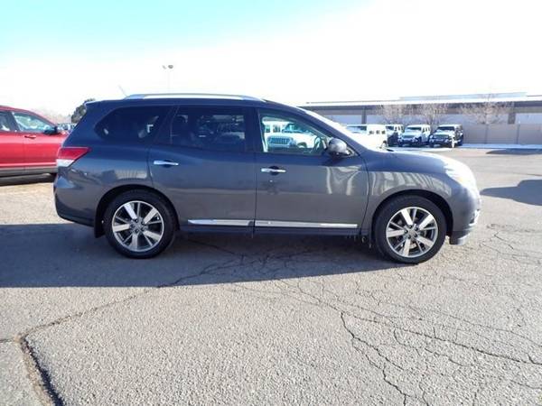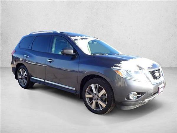 * [P02] Platinum Premium Package * Dual Moonroof * Leather Seats * Navigation System * 3rd Row Seat * [L92] Carpeted Floor Mat (4-Pc Set) * [B94] Rear Bumper Protector * [B92] Black Splash Guards (Set Of 4) * Keyless Start * Rear Spoiler * Cooled Front Seat(S) * [C03] 50 State Emissions * Charcoal; Leather Seating Surfaces * Dark SlateThis vehicle includes a Money-Back Guarantee* and passed our precise inspection process. Best of all the price you see is the price you pay. No haggling. No back and forth. No pressure. And this price is so good it is guaranteed. *Money-Back Guarantee is valid for 5 days or 250 miles, whichever comes first. Subject to certain terms and conditions. See store for details. Some restrictions apply.Check out this pre-owned 2014 Nissan Pathfinder we recently got in. This Nissan includes: [B94] REAR BUMPER PROTECTOR (PIO) [B92] BLACK SPLASH GUARDS (SET OF 4) (PIO) DARK SLATE [L92] CARPETED FLOOR MAT (4-PC SET) [P02] PLATINUM PREMIUM PACKAGE *Note - For third party subscriptions or services, please contact the dealer for more information.* Enjoy an extra level of calm when purchasing this Nissan Pathfinder Platinum, it's a CARFAX One-Owner. The CARFAX report shows everything you need to know to confidently make your pre-owned purchase. The Pathfinder Platinum doesn't disappoint, and comes with all the quality and understated opulence buyers have come to expect from the respected Nissan marque. A truly versatile SUV, this vehicle will please even the most discerning of buyers. The Nissan Pathfinder Platinum's pristine good looks were combined with the Nissan high standard of excellence in order to make this a unique find. Want to brave the road less traveled? You'll have the 4WD capabilities to do it with this vehicle. This 2014 Nissan Pathfinder has such low mileage it has been parked more than driven. With past service records included, feel comfortable knowing that the history of this Nissan Pathfinder Platinum is provided in order for you to make a knowledgeable decision. This wonderfully maintained Nissan Pathfinder is in the top 10% of its class when it comes to cleanliness and condition. Fast, yet nimble, this highly refined automobile will turn heads wherever you go, provided of course, they even see you. The Nissan Pathfinder Platinum is in a class on its own. So much so, that Nissan didn't miss a beat when they loaded this vehicle with an abundance of a-la-carte options. Marked by excellent quality and features with unmistakable refined leather interior that added value and class to the Nissan Pathfinder Platinum. More information about the 2014 Nissan Pathfinder: The Pathfinder remains a very good value for the money. Between its seating capacity and fuel economy the Pathfinder makes a good value play. While previous Pathfinders competed with truck-like SUVs like the Toyota 4Runner, the 2014 Pathfinder aims instead to compete more closely with crossover vehicles such as the Toyota Highlander, bringing more space and refinement to the market at a slight cost to seldom used off-road capabilities. The new-for-2014 hybrid makes 26 combined mpg, impressive fuel economy for any SUV, particularly one that can haul up to 7 passengers. Interesting features of this model are competitive pricing, third row seating, 5000lb towing capacity, available hybrid drivetrain, Good fuel economy, and spacious interior Collapse Expand Pause Play