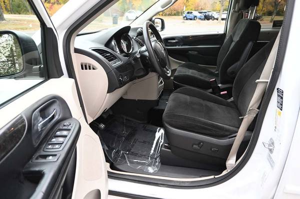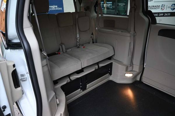 Door Opening Height: 56" and width: 31". 2015 Dodge Grand Caravan SXT BraunAbility Power Fold-Out Side Entry rampvan for sale. Built with durability in mind, this BraunAbility disability equipped handicap wheelchair accessible ramp van is perfect for commercial use. With a power fold-out ramp, with swing-out pass-through option, Removable front seats, and L-Track wheelchair restraint system rails throughout it allows up to 2 wheelchair passenger positions. In good shape for it's miles with wear inside and out. This SXT model Grand Caravan also features: White exterior, black cloth interior, Alloy wheels, tires have 60% tread life left, AM/FM/CD player sound system, key-less remote with power windows, locks, and mirrors, rear privacy glass, 1-zone Heat/AC controls, cruise control, all-aluminum fold out ramp with swing away, durable industrial flooring, manual wheelchair restraints, inside mounted spare tire, smooth and efficient 3.6L Dodge V6 motor and front wheel drive. This vehicle is offered for sale by Mobility Auto Group. With two Colorado locations at: 1500 W Campus Drive, Littleton CO 80120 & 2311 S Platte River Drive, Denver CO 80223. We don't charge a Dealer Handling Fee and are your mobility one-stop-shop. Just give us a call as we offer it all: sales, service, parts, and rentals. Open M-F 9am - 6pm. Sat by appt. Call (844) 289-2635.