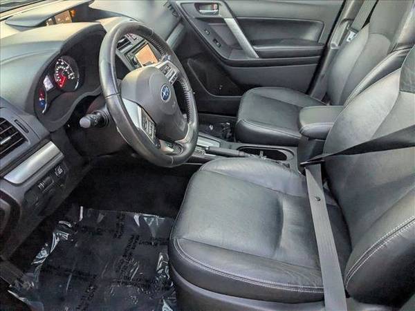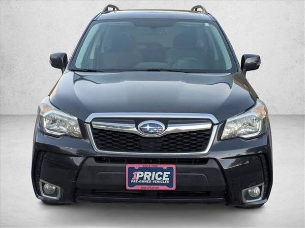 * Panoramic Roof * Popular Package #2 * Leather Seats * Navigation System * Rear Spoiler * Base Model * Black; Perforated Leather-Trimmed Upholstery * Dark Gray MetallicThis vehicle includes a Money-Back Guarantee* and passed our precise inspection process. Best of all the price you see is the price you pay. No haggling. No back and forth. No pressure. And this price is so good it is guaranteed. *Money-Back Guarantee is valid for 5 days or 250 miles, whichever comes first. Subject to certain terms and conditions. See store for details. Some restrictions apply.This outstanding example of a 2014 Subaru Forester 2.0XT Touring is offered by Autonation Subaru West. Looking for a one-owner vehicle? You've found it. CARFAX shows this vehicle was owned by the original buyer. This versatile SUV is perfect for families or contractors with its oversized cargo area, exceptional horsepower and option upgrades. You'll love the feel of AWD in this 2014 Subaru Forester. It provides a perfect balance of handling power and control in virtually every driving condition. One of the best things about this Subaru Forester is that it has low, low mileage. It's ready for you to truly break it in. Added comfort with contemporary style is the leather interior to heighten the quality and craftsmanship for the Subaru Forester 2.0XT Touring. Take the guesswork out of where you are going with the top-tier navigation system found on this exceptional Subaru Forester. More information about the 2014 Subaru Forester: The Subaru Forester has always been a very nice compromise between the practicality of a small hatchback or station wagon and the capabilities of an SUV. Though it can't off-road like some of the more serious SUVs out there, the Forester does at least come standard with all-wheel-drive, unlike most of its competition. Though base model Foresters perform similarly to competitors from Ford and Mazda, turbocharged versions offers significantly more power, resulting in sprightly performance. On-road handling is also a step above what is generally offered in this segment. The Forester starts at just under $22,000. This model sets itself apart with All-wheel-drive, practical, good mix of fuel efficiency and performance, good ground clearance, improved interior space