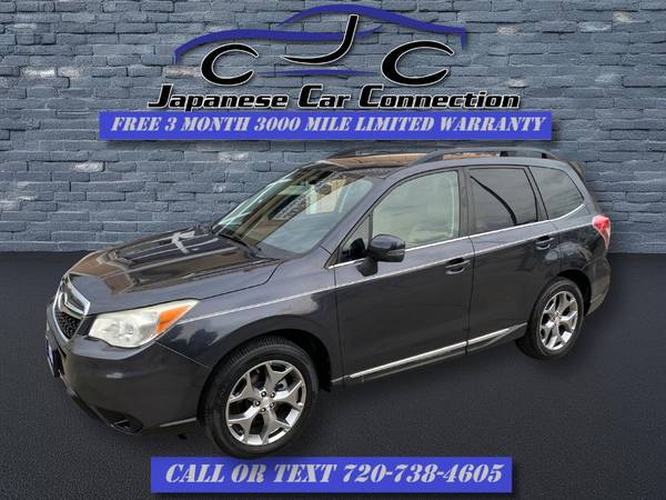 All cars come with receipts and work orders of the work that we performed. 2015 Subaru Forester 2.5i Touring, 100K miles. Great condition inside and out, no rust, Clean Title, Non Smoker, Non Pet, Dark Gray Metallic paint with Heated Gray leather interior. Full 120 point inspection, Fresh fluids and filters throughout, New front & rear brake pads, New rear wheel bearings, New Control arm bushings, all in all nearly 2k of parts and labor. we drive our cars over 100 miles to ensure that everything is operating as it should! 3 month 3k mile limited warranty. Extended Warranty options available.