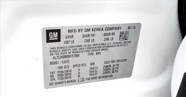 * Lpo; Protection Package * Lpo; Front And Rear Splash Guards; Custom Molded * License Plate Bracket; Front * 1Ls Preferred Equipment Group * Axle; 3.53 Final Drive Ratio * Chevrolet Mylink Radio; 7" Diagonal Color Touch-Screen; AM/FM Stereo * Emissions; Federal Requirements * Engine; Ecotec Turbo 1.4L Variable Valve Timing Dohc 4-Cylinder Sequential Mfi * Jet Black; Cloth Seat Trim * Lpo; All-Weather Floor Mats; Front And Rear * Seats; Front Bucket With Driver Power Lumbar * Summit White * Transmission; 6-Speed AutomaticThis vehicle includes a Money-Back Guarantee* and passed our precise inspection process. Best of all the price you see is the price you pay. No haggling. No back and forth. No pressure. And this price is so good it is guaranteed. *Money-Back Guarantee is valid for 5 days or 250 miles, whichever comes first. Subject to certain terms and conditions. See store for details. Some restrictions apply.