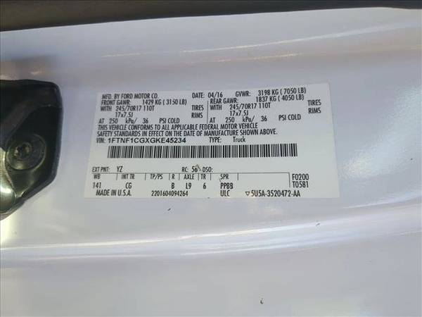 * Engine: 3.5L V6 Ecoboost * Equipment Group 101A Mid * Heavy-Duty Payload Package * Max Trailer Tow Package * Xl Sport Appearance Package * Electronic Locking W/3.55 Axle Ratio * Extended Range 36 Gallon Fuel Tank * Black Platform Running Boards * Rear View Camera W/Dynamic Hitch Assist * Fog Lamps * Class Iv Trailer Hitch Receiver * Manual-Folding Manual Glass Trailer Tow Mirrors * Boxlink * Dark Earth Gray; Cloth 40/20/40 Front Seat * Front License Plate Bracket * Oxford White * Transmission: Electronic 6-Speed AutomaticThis vehicle includes a Money-Back Guarantee* and passed our precise inspection process. Best of all the price you see is the price you pay. No haggling. No back and forth. No pressure. And this price is so good it is guaranteed. *Money-Back Guarantee is valid for 5 days or 250 miles, whichever comes first. Subject to certain terms and conditions. See store for details. Some restrictions apply.AutoNation Dodge Ram Arapahoe is honored to present a wonderful example of pure vehicle design... this 2016 Ford F-150 XL only has 72,387mi on it and could potentially be the vehicle of your dreams! This Ford includes: ENGINE: 3.5L V6 ECOBOOST V6 Cylinder Engine Gasoline Fuel Turbocharged *Note - For third party subscriptions or services, please contact the dealer for more information.* From city-life to country-life, this trucks ready to do it all. You can tell this 2016 Ford F-150 has been pampered by the fact that it has less than 72,387mi and appears with a showroom shine. More information about the 2016 Ford F-150: The F-150 might be the most important vehicle made by Ford. It continues to be one of their top-selling vehicles, encouraging Ford to put their best foot forward with the 2016 model. The F-150 competes with the Ram, the Chevrolet Silverado and the GMC Sierra 1500, among others, in the full-sized truck category. Ford is clearly pushing its new technology and new ideas with the F-150, offering plenty of options not available anywhere else in this class, such as a 360-degree camera and integrated loading ramps stowed in the pickup bed. A smaller, more fuel efficient EcoBoost engine is also available, which should further improve fuel economy while providing the same kind of horsepower that would normally be delivered by mid-grade V8 engines. At the same time, the F-150 continues to excel at traditional truck tasks, with a best in class towing capacity of 12,200 pounds when properly equipped. Interesting features of this model are available in a huge variety of trims, Towing capacity, efficient turbocharged engines, improved gas mileage, and rugged durability