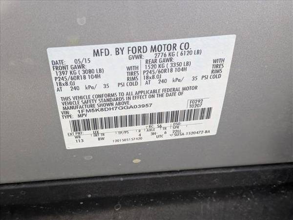 * Equipment Group 202A * Engine: 2.3L I-4 Ecoboost * Voice Activated Navigation System * Blis Plus Inflatable Rear Safety Belts Package * Hands-Free Liftgate * Leather Seats * Navigation System * 3rd Row Seat * Class Ii Trailer Tow Package * Keyless Start * Rear Spoiler * Ebony Black; Leather-Trimmed Heated Bucket Seats * Front License Plate Bracket * Ingot Silver Metallic * Transmission: 6-Speed Selectshift Automatic (446)This vehicle includes a Money-Back Guarantee* and passed our precise inspection process. Best of all the price you see is the price you pay. No haggling. No back and forth. No pressure. And this price is so good it is guaranteed. *Money-Back Guarantee is valid for 5 days or 250 miles, whichever comes first. Subject to certain terms and conditions. See store for details. Some restrictions apply.This Ford includes: INGOT SILVER METALLIC CLASS II TRAILER TOW PACKAGE Tow Hitch ENGINE: 2.3L 4 Cylinder Engine Tires - Front Performance Tires - Rear Performance Gasoline Fuel Turbocharged EBONY BLACK, LEATHER-TRIMMED HEATED BUCKET SEATS Power Passenger Seat Power Driver Seat Heated Front Seat(s) Passenger Adjustable Lumbar Leather Seats Driver Adjustable Lumbar Bucket Seats BLIS PLUS INFLATABLE REAR SAFETY BELTS PACKAGE Seatbelt Air Bag Blind Spot Monitor Cross-Traffic Alert HANDS-FREE LIFTGATE Power Liftgate Remote Trunk Release TRANSMISSION: 6-SPEED SELECTSHIFT AUTOMATIC Transmission w/Dual Shift Mode A/T 6-Speed A/T VOICE ACTIVATED NAVIGATION SYSTEM Navigation System CD Player Premium Sound System Auxiliary Audio Input MP3 Capability *Note - For third party subscriptions or services, please contact the dealer for more information.* This Ford Explorer XLT has a tough exterior complemented by a well-designed interior that offers all the comforts you crave. Taking the road less traveled has never been more fun than with this 4WD. With improved performance, mileage and acceleration, this 2016 4WD Ford Explorer XLT is king of the off-road. One of the best things about this Ford Explorer is that it has low, low mileage. It's ready for you to truly break it in. Added comfort with contemporary style is the leather interior to heighten the quality and craftsmanship for the Ford Explorer XLT. This Ford Explorer offers the most up-to-date navigation system available so you'll always know the most efficient route to where you are going. More information about the 2016 Ford Explorer: The Ford Explorer has been rated one of the safest utility vehicles at any size or price; it's the first vehicle in the world to offer rear inflatable seatbelts. Curve control -- a more advanced version of electronic stability control -- is also a Ford exclusive. Ford's MyKey system helps parents manage the teen drivers in the family. The Explorer also stands out for being one of the "greenest" choices available. Ford claims best-in-class gas mileage for non-hybrids and notes that the Explorer EcoBoost will go 20 percent farther on a gallon of gas than the Honda Pilot. This model sets itself apart with excellent ride quality, Quiet interior, world-class safety features, EcoBoost engine provides good mileage, and good value