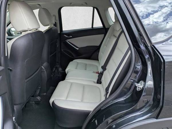 * Grand Touring Technology Package * Sun/Moonroof * Leather Seats * Keyless Start * Rear Spoiler * Jet Black Mica * Sand/Parchment; Leather Seat TrimThis vehicle includes a Money-Back Guarantee* and passed our precise inspection process. Best of all the price you see is the price you pay. No haggling. No back and forth. No pressure. And this price is so good it is guaranteed. *Money-Back Guarantee is valid for 5 days or 250 miles, whichever comes first. Subject to certain terms and conditions. See store for details. Some restrictions apply.Autonation Subaru West is honored to present a wonderful example of pure vehicle design... this 2016 Mazda CX-5 Grand Touring only has 97,579mi on it and could potentially be the vehicle of your dreams! On almost any road condition, this Mazda CX-5 Grand Touring offers solid performance, reliability, and comfort. You'll love the feel of AWD in this 2016 Mazda CX-5. It provides a perfect balance of handling power and control in virtually every driving condition. In addition to being well-cared for, this Mazda CX-5 has very low mileage making it a rare find. Added comfort with contemporary style is the leather interior to heighten the quality and craftsmanship for the Mazda CX-5 Grand Touring. More information about the 2016 Mazda CX-5: The 2016 Mazda CX-5 competes with the likes of the Honda CR-V, Subaru Forester, Toyota RAV4 and Ford Escape. Even in this crowd, it's one of the sportiest-driving models, with surprisingly good fuel economy ratings considering that. The Mazda CX-5 also stands out for offering a great ride quality and a flexible, spacious interior. The Mazda CX-5's infotainment system, with Bose sound, is one of the most feature-packed in its competitive set, too, with things like well-integrated Pandora internet radio. Interesting features of this model are good set of safety features, full-features audio and infotainment, Perhaps the best-handling in its class, excellent fuel economy ratings, stylish exterior, and perky powertrain (Touring and Grand Touring)