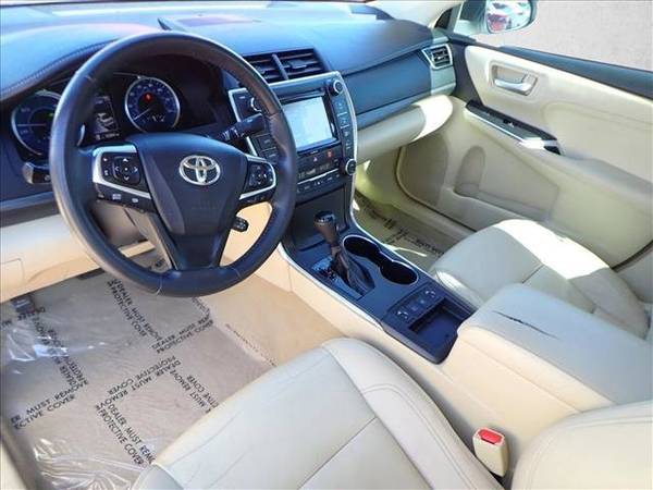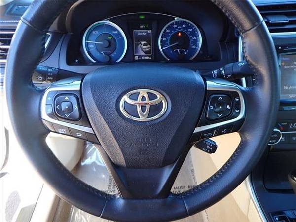 * Radio: Entune Premium W/Jbl Audio & Navigation * Moonroof Package * Technology Package * Sun/Moonroof * Safety Connect W/Mayday System * Blind Spot Monitor * Leather Seats * Navigation System * Special Color * Convenience Package * Mat * Body Side Moldings * Qi Wireless Charging Capability * Keyless Start * 50 State Emissions * Almond; Leather Seat TrimThis vehicle includes a Money-Back Guarantee* and passed our precise inspection process. Best of all the price you see is the price you pay. No haggling. No back and forth. No pressure. And this price is so good it is guaranteed. *Money-Back Guarantee is valid for 5 days or 250 miles, whichever comes first. Subject to certain terms and conditions. See store for details. Some restrictions apply.Looking for a clean, well-cared for 2016 Toyota Camry Hybrid? This is it. This Toyota includes: QI WIRELESS CHARGING CAPABILITY BLIND SPOT MONITOR CONVENIENCE PACKAGE SAFETY CONNECT W/MAYDAY SYSTEM ALMOND, LEATHER SEAT TRIM MOONROOF PACKAGE BLIZZARD PEARL *Note - For third party subscriptions or services, please contact the dealer for more information.* The less money you spend at the pump, the more money you'll have to spend on you. So why not consider this wonderfully styled, fuel-efficient Toyota Camry Hybrid. It's not often you find just the vehicle you are looking for AND with low mileage. This is your chance to take home a pre-owned and barely driven Toyota Camry Hybrid. With complete historical records, you'll know your next pre-owned vehicle, like this one, inside and out before you purchase it. Although this 2016 Toyota Camry Hybrid XLE is technically a pre-owned vehicle, the clean and spotless interior could fool even the toughest critic. You will never have to worry about keeping up with traffic in this Toyota Camry Hybrid XLE as it packs a beast under the hood. You demand the best in everything, so why would your automobile be any different? Enjoy the best features available in this stunning Toyota Camry Hybrid. Added comfort with contemporary style is the leather interior to heighten the quality and craftsmanship for the Toyota Camry Hybrid XLE. The Toyota Camry has been the best-selling car in America for twelve years now. The Camry is a massive success and with good reason -- it's got proven reliability, a quiet and spacious interior, good fuel economy and exciting exterior styling. For anyone who needs quiet, comfortable transportation for up to five people without breaking the bank, the Camry is invariably the place to start the search. The Camry offers a ton of versatility for the price, but can also be optioned up to give buyers that luxury car feel if they so desire. Collapse Expand Pause Play