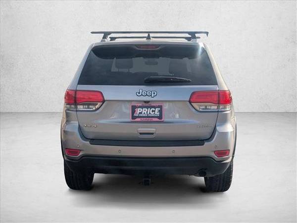 * All Weather Trail Rated Package * Full Size Spare Tire * Engine Block Heater * Keyless Start * Rear Spoiler * Billet Silver Metallic Clearcoat * Black; Cloth Low Back Bucket Seats * Engine: 3.6L V6 24V Vvt Upg I W/Ess * Tires: P245/70R17 Bsw On/Off Road * Transmission: 8-Speed Automatic (845Re) * Wheels: 17" X 8.0" AluminumThis vehicle includes a Money-Back Guarantee* and passed our precise inspection process. Best of all the price you see is the price you pay. No haggling. No back and forth. No pressure. And this price is so good it is guaranteed. *Money-Back Guarantee is valid for 5 days or 250 miles, whichever comes first. Subject to certain terms and conditions. See store for details. Some restrictions apply.2017JeepGrand Cherokee This Jeep includes: ENGINE: 3.6L V6 24V VVT UPG V6 Cylinder Engine Gasoline Fuel *Note - For third party subscriptions or services, please contact the dealer for more information.* Do so much more with one vehicle. This Jeep Grand Cherokee gives you everything you need an automobile to be. Equipped with 4WD, this Jeep Grand Cherokee Laredo gives you added confidence to tackle the surface of any path you take. In addition to being well-cared for, this Jeep Grand Cherokee has very low mileage making it a rare find. More information about the 2017 Jeep Grand Cherokee: The Jeep Grand Cherokee has proven itself the premiere luxury SUV for 20 years. The latest Grand Cherokee builds on that tradition by offering civilized highway driving as well as the equipment to make a credible show off-road. The base Laredo 4x2 starts at just under $30,000 and comes very well equipped. Meanwhile, the top-of-the-line SRT models' all-wheel-drive on-road performance rivals that of the Porsche Cayenne Turbo, but for half the price. This model sets itself apart with Proven off-road prowess, high-performance SRT variant, powerful engine lineup with diesel availability, and luxurious interior