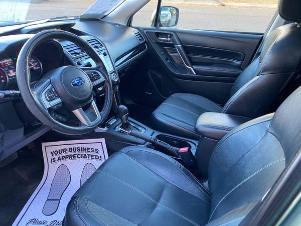 All cars come with receipts and work orders of the work that we performed. 2017 Subaru Forester 2.5i Touring, with leather 125K miles. Great condition, great deal no rust, Clean Title, 1 Owner, Jasmine Green Metallic paint with heated black leather interior. Full 120 point inspection, New fresh oil change, NEW CVT Transmission Fluid change, NEW Front Brake pads & Rotors. 3 month 3k mile limited warranty. Extended Warranty options available.