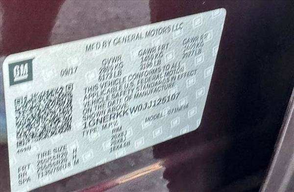 * Sunroof; Dual Skyscape 2-Panel Power * Dual Moonroof * Leather Seats * Driver Confidence Ii Package * Navigation System * 3rd Row Seat * Black Currant Metallic * Lane Keeping Assist * License Plate Front Mounting Package * Cooled Front Seat(S) * Audio System; Chevrolet Mylink Radio * Emissions; Federal Requirements * Engine; 3.6L V6; Sidi; Vvt * Following Distance Indicator * Forward Collision Alert * Front Pedestrian Braking * Headlamps; Intellibeam Auto High Beam Control * Jet Black; Perforated Leather-Appointed Seat Trim * Lane Keep Assist With Lane Departure Warning * Low Speed Forward Automatic Braking * Premier Preferred Equipment Group * Seats; Front Bucket * SiriusXM Satellite Radio Additional 9 Months Of The SiriusXM All Access Package * Transmission; 9-Speed Automatic * Wheels; 20" (50.8 Cm) Argent Metallic Machine Faced Aluminum * Fleet Free Maintenance Credit.This vehicle includes a Money-Back Guarantee* and passed our precise inspection process. Best of all the price you see is the price you pay. No haggling. No back and forth. No pressure. And this price is so good it is guaranteed. *Money-Back Guarantee is valid for 5 days or 250 miles, whichever comes first. Subject to certain terms and conditions. See store for details. Some restrictions apply.CARFAX ACCIDENT