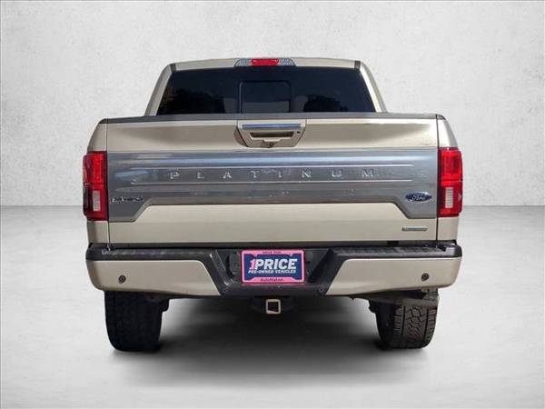 * Equipment Group 701A Luxury * Technology Package * Twin Panel Moonroof * Fx4 Off-Road Package * Panoramic Roof * Engine: 3.5L V6 Ecoboost * Leather Seats * Navigation System * Electronic Locking W/3.55 Axle Ratio * Extended Range 36 Gallon Fuel Tank * Tailgate Step W/Tailgate Lift Assist * Lane Keeping Assist * Keyless Start * Cooled Front Seat(S) * Black; Black Unique Multi-Contour Leather Bucket Seats * Front License Plate Bracket * Transmission: Electronic 10-Speed Automatic * White GoldThis vehicle includes a Money-Back Guarantee* and passed our precise inspection process. Best of all the price you see is the price you pay. No haggling. No back and forth. No pressure. And this price is so good it is guaranteed. *Money-Back Guarantee is valid for 5 days or 250 miles, whichever comes first. Subject to certain terms and conditions. See store for details. Some restrictions apply.Contact AutoNation Buick GMC West today for information on dozens of vehicles like this 2018 Ford F-150 Platinum. You appreciate the finer things in life, the vehicle you drive should not be the exception. Style, performance, sophistication is in a class of its own with this stunning Ford F-150 Platinum. Equipped with 4WD, this Ford F-150 Platinum gives you added confidence to tackle the surface of any path you take. A Ford with as few miles as this one is a rare find. This F-150 Platinum was gently driven and it shows. Marked by excellent quality and features with unmistakable refined leather interior that added value and class to the Ford F-150 Platinum.