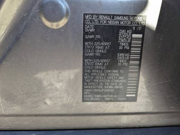 * [L92] Floor Mats & 2-Pc Cargo Area Protector * Keyless Start * Rear Spoiler * [C03] 50 State Emissions * Charcoal; Cloth Seat Trim * Gun MetallicThis vehicle includes a Money-Back Guarantee* and passed our precise inspection process. Best of all the price you see is the price you pay. No haggling. No back and forth. No pressure. And this price is so good it is guaranteed. *Money-Back Guarantee is valid for 5 days or 250 miles, whichever comes first. Subject to certain terms and conditions. See store for details. Some restrictions apply.Thank you for your interest in one of AutoNation Buick GMC West's online offerings. Please continue for more information regarding this 2018 Nissan Rogue SV with 93,222mi. This versatile SUV is perfect for families or contractors with its oversized cargo area, exceptional horsepower and option upgrades. This vehicle was engineered to be both economically and environmentally friendly with exceptional fuel efficiency. This AWD-equipped vehicle will handle beautifully on any terrain and in any weather condition your may find yourself in. The benefits of driving an all wheel drive vehicle, such as this Nissan Rogue SV, include superior acceleration, improved steering, and increased traction and stability. This low mileage Nissan Rogue has barely been touched. It's the next best thing to buying new.