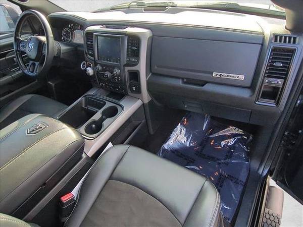 * Engine: 5.7L V8 Hemi Mds Vvt * Radio: Uconnect 4C Nav W/8.4" Display * Luxury Group * Black Tubular Side Steps * Ram 1500 Black Rebel Group * Trailer Tow Mirrors & Brake Group * Spray In Bedliner * Transmission: 8-Speed Automatic (8Hp70) * Navigation System * 32 Gallon Fuel Tank * Keyless Go * Protection Group * Trailer Brake Control * Brilliant Black Crystal Pearlcoat * 3.21 Rear Axle Ratio * Keyless Start * Black; Premium Cloth Seats W/Emboss Tread Pattern * Brilliant Black Crystal Pearlcoat * Monotone Paint * Wheels: 17" X 8" Matte Black Aluminum2018 RAM 1500 REBEL THE BLACK-ARMOR WARRIOR AutoNation Dodge Ram Broadway 5600 S Broadway Littleton, CO 720.842.7793 START WITH A BREATH END WITH A TRUTH: Some trucks are bought. A Rebel is chosen. This 2018 RAM 1500 Rebel 4x4 , drenched in Brilliant Black Crystal Pearl Coat , carrying 62,866 miles of earned road , and powered by the legendary 5.7L HEMI V8 , isnt here to blend in. Its the Threshold Guardian. The Off-Road Seeker. The one that tests whether youre worthy to take the wheel. This is the truck built for those who hear the call of dirt, dusk, and open distance. POWER & CAPABILITY WHERE MUSCLE MEETS INTENTION 5.7L HEMI V8 MDS VVT Engine explosive, disciplined, proven 8-Speed Automatic 8HP70 Transmission 3.92 Axle Ratio pure off-road leverage 4-Corner Air Suspension rise above the terrain Class IV Hitch + Tow Mirrors + Trailer Brake Control Transfer Case & Front Suspension Skid Plates (Protection Group) LT285/70R17E All-Terrain Tires Musashi said: Study strategy over the years and achieve the spirit of the warrior. This Rebel was engineered with that spirit. SAFETY THAT WATCHES LIKE A SENTINEL Advanced Multistage Front Airbags Side-Curtain Airbags (Front & Rear) Anti-Lock 4-Wheel Disc Brakes Remote Keyless Entry + All-Secure ParkView Rear Back-Up Camera Sentry Key Theft Deterrent System Speed Control + Remote Start System It protects what you carry. It protects who you are. TECH & INTERIOR BUILT FOR COMMAND Inside the cabin: the Voicekeeper speaks. Rhythm. Stillness. Power held in reserve. Premium Cloth Rebel Seats w/ Embossed Tread Pattern Heated Front Seats + Heated Steering Wheel Power 10-Way Driver / 6-Way Passenger Seats Dual-Zone Auto Climate Control Uconnect 4C w/ 8.4 Touchscreen Apple CarPlay + Android Auto Uconnect 4C NAV (optional upgrade) SiriusXM, Radio, Guardian, Traffic Plus, Travel Link Rear Power Sliding Window Off-Road Rubber Floor Mats Second-Row In-Floor Storage Bins Folding Flat Load Floor This is the cockpit of a vehicle built for real missions. EXTERIOR THE BLACK REBEL AESTHETIC 17 Matte Black Aluminum Wheels (Black Rebel Group) Black Powder-Coated Front Bumper Dual Rear Exhaust w/ Bright Tips Black Tubular Side Steps LED Bed Lighting Power Heated Fold-Away Mirrors + Courtesy Lamps Spray-In Bedliner A silhouette made of shadow and momentum. THE REBEL PACKAGE WHERE POWER MEETS PURPOSE Sun Tzu taught: Attack where the enemy is unprepared. This Rebel arrives fully equipped for the unprepared roads. Rebel Package 26W Luxury Group Protection Group Black Rebel Group Trailer Tow Mirror & Brake Control Group 32-Gallon Fuel Tank This isnt an ordinary truck. This is a campaign-ready machine. THE MOMENT YOU KNOW ITS YOURS When you step inside, something happens A shift. A recognition. As if the steering wheel has been waiting for your hands. If you feel that pull dont ignore it. Your 2018 Ram 1500 Rebel is waiting. Call AutoNation Dodge Ram Broadway: 720.842.7793 5600 S Broadway Littleton, CO DISCLAIMER OPTIONS AT TIME OF OEM PRODUCTION