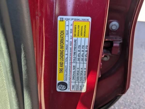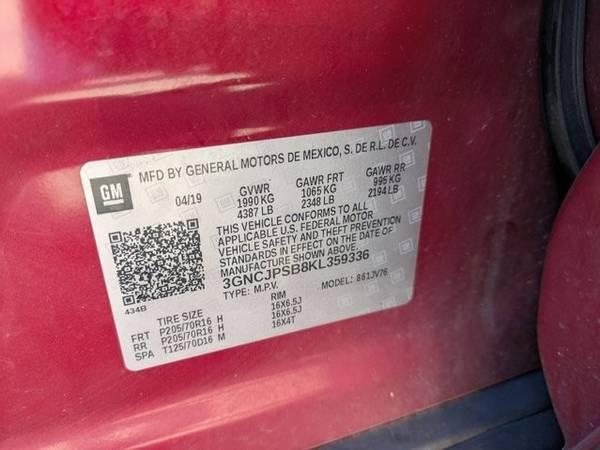* Lt Convenience Package * Cajun Red Tintcoat * Lpo; Protection Package * Keyless Start * License Plate Bracket; Front * Audio System; Chevrolet Infotainment System * Axle; 3.53 Final Drive Ratio * Door Handles; Body-Color With Chrome Accent * Emissions; Connecticut; Delaware; Maine; Maryland; Massachusetts; New Jersey; New York; Oregon; Pennsylvania; Rhode Island; Vermont And Washington State Requirements * Engine; Ecotec Turbo 1.4L Variable Valve Timing Dohc 4-Cylinder Sequential Mfi * Jet Black; Deluxe Cloth/Leatherette Seat Trim * Key System; 2 Spare Keys * Keyless Open * Keyless Start * Lpo; All-Weather Floor Mats; Front And Rear * Lpo; Front And Rear Splash Guards; Custom Black Molded * Lt Preferred Equipment Group * Seat Adjuster; Driver 6-Way Power * Seat Trim; Deluxe Cloth/Leatherette * Seats; Front Bucket With Driver Power Lumbar * Steering Wheel; Leather-Wrapped 3-Spoke * Tires; P205/70R16 All-Season; Blackwall * Transmission; 6-Speed Automatic * Wheels; 16" (40.6 Cm) AluminumThis vehicle includes a Money-Back Guarantee* and passed our precise inspection process. Best of all the price you see is the price you pay. No haggling. No back and forth. No pressure. And this price is so good it is guaranteed. *Money-Back Guarantee is valid for 5 days or 250 miles, whichever comes first. Subject to certain terms and conditions. See store for details. Some restrictions apply.This outstanding example of a 2019 Chevrolet Trax LT is offered by Autonation Subaru West. The Chevrolet Trax is the benchmark all other SUVs strive to meet. With exceptional power, towing and handling, this SUV can handle anything thrown at it. This Chevrolet Trax LT comes equipped with all wheel drive, which means no limitations as to how or where you can drive. Different terrains and varying weather conditions will have little effect as to how this vehicle performs. One of the best things about this Chevrolet Trax is that it has low, low mileage. It's ready for you to truly break it in.
