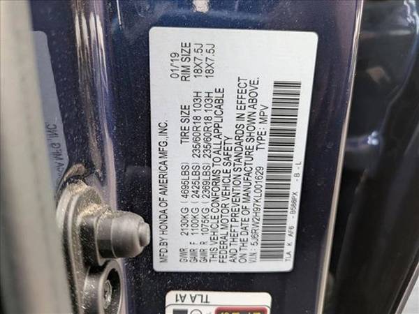 * Moonroof * Leather Seats * Navigation System * Lane Keeping Assist * Keyless Start * Rear Spoiler * Gray; Leather Seat Trim * Obsidian Blue PearlThis vehicle includes a Money-Back Guarantee* and passed our precise inspection process. Best of all the price you see is the price you pay. No haggling. No back and forth. No pressure. And this price is so good it is guaranteed. *Money-Back Guarantee is valid for 5 days or 250 miles, whichever comes first. Subject to certain terms and conditions. See store for details. Some restrictions apply.This 2019 Honda CR-V Touring is offered to you for sale by Autonation Subaru West. Want more room? Want more style? This Honda CR-V Touring is the vehicle for you. Outstanding fuel economy and sleek styling are two great reasons to consider this Honda CR-V. Enjoy driving? Well now you will get more thrills behind the wheel thanks to the heightened performance of AWD. Better handling. Better traction. Better driving experience. One of the best things about this Honda CR-V is that it has low, low mileage. It's ready for you to truly break it in. Marked by excellent quality and features with unmistakable refined leather interior that added value and class to the Honda CR-V Touring.