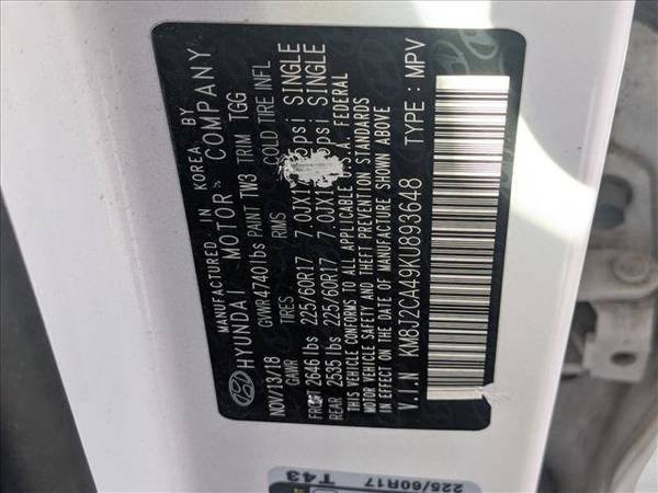 * Cargo Cover * Carpeted Floor Mats * Mudguards * Reversible Cargo Tray * Lane Keeping Assist * Cargo Net * Rear Spoiler * First Aid Kit * Gray; Yes Essentials Cloth Seat Trim * Option Group 01 * White PearlThis vehicle includes a Money-Back Guarantee* and passed our precise inspection process. Best of all the price you see is the price you pay. No haggling. No back and forth. No pressure. And this price is so good it is guaranteed. *Money-Back Guarantee is valid for 5 days or 250 miles, whichever comes first. Subject to certain terms and conditions. See store for details. Some restrictions apply.Contact AutoNation Chrysler Jeep West today for information on dozens of vehicles like this 2019 Hyundai Tucson SE. On almost any road condition, this Hyundai Tucson SE offers solid performance, reliability, and comfort. Savor the satisfaction of safety in any condition with this AWD Hyundai Tucson. Superior acceleration, unmatched traction and stability as well as a luxurious interior round out the impressive features of this AWD Hyundai Tucson. It's not a misprint. And the odometer isn't broken. This is a very low mileage Hyundai Tucson. A rare find these days. The quintessential Hyundai -- This Hyundai Tucson SE speaks volumes about its owner, about uncompromising individuality, a passion for driving and standards far above the ordinary.