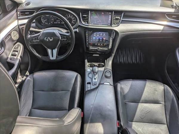 * [X02] Premium Heat Package * [H01] Premium Audio Package * Panoramic Roof * [V01] Proassist Package * Leather Seats * Navigation System * [N92] Illuminated Kick Plates * [B92] Splash Guards (Set Of 4) * Keyless Start * Rear Spoiler * [C03] 50 State Emissions * Graphite Shadow * Graphite; LeatherAutoNation Chrysler Jeep West has a wide selection of exceptional pre-owned vehicles to choose from, including this 2019 INFINITI QX50. This INFINITI QX50 offers all the comforts of a well-optioned sedan with the utility you demand from an SUV. Opulent refinements married with exceptional engineering make this the kind of car you'll want to own for a lifetime. Few vehicles can match the safety and comfort of this AWD INFINITI QX50 ESSENTIAL. With enhanced performance, refined interior and exceptional fuel efficiency, this AWD INFINITI is in a class of its own. This 2019 INFINITI QX50 has such low mileage it has been parked more than driven.