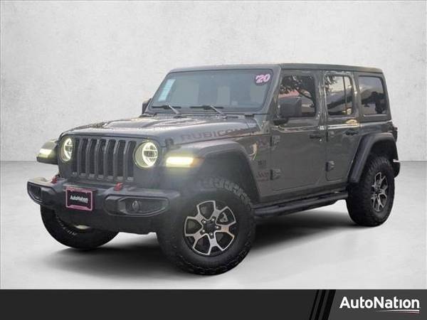 * Transmission: 8-Speed Automatic (850Re) * 8.4" Radio & Premium Audio Group * Alpine Premium Audio System * Black 3-Piece Hard Top * Led Lighting Group * Cold Weather Group * Safety Group * Remote Proximity Keyless Entry * Remote Start System * Navigation System * Keyless Start * Convertible Hardtop * 4.10 Rear Axle Ratio * Black; Premium Cloth Low-Back Bucket Seats * Engine: 3.6L V6 24V Vvt Upg I W/Ess * Front License Plate Bracket * Gvwr: 5;800 Lbs * Radio: Uconnect 4C Nav W/8.4" Display * Sting-Gray Clearcoat * Tires: Lt285/70R17C Bsw Off-Road * Wheels: 17" X 7.5" Machined W/Black PocketsThis vehicle includes a Money-Back Guarantee* and passed our precise inspection process. Best of all the price you see is the price you pay. No haggling. No back and forth. No pressure. And this price is so good it is guaranteed. *Money-Back Guarantee is valid for 5 days or 250 miles, whichever comes first. Subject to certain terms and conditions. See store for details. Some restrictions apply.2020 JEEP WRANGLER UNLIMITED RUBICON 4X4 Active Parking System Alloy Wheels Android Auto Anti-Theft System Apple Carplay Approach Lights Auto Start/Stop Auto-dimming Rearview Mirror Automatic Climate Control Blind Spot Warning Bluetooth Braking Assist Bucket Seats Cold Weather Package Connected Car Connected Car Integrated Apps Convertible Hardtop Cruise Control Customizable Instrument Display Driver Assistance Package Electronic Braking System Electronic Messaging Assistance Electronic Traction Control Fog Lights Front Bucket Seats Full Size Spare Tire Halogen Headlights Heated Seats Heated Side Mirrors Heated Steering Wheel Leather Steering Wheel Lighting Package Locking Differential Multi-Function Display Off-Road Suspension On Demand 4WD Parking Sensors Premium Sound System Push-Button Start Radio Data System Rear Cross Traffic Alert Rear Headrests Rearview Camera Remote Engine Start Removable Roof Satellite Radio Side Airbags Stability Control Steering Wheel Mounted Controls Tire Pressure Monitoring System Tow Hooks USB Audio Input Urethane Shift Knob Voice Activated Commands Wi-Fi Compatible