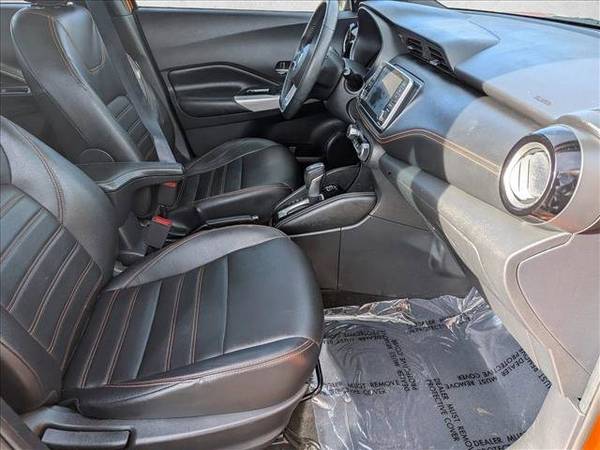 * [P01] Sr Premium Package * [W10] Wheels: 17" Black Alloy * [N95] Center Armrest W/Storage * [L92] Carpeted Floor Mats W/Cargo Mat * [B92] Splash Guards Grain (4 Piece) * Keyless Start * Rear Spoiler * [C03] 50 State Emissions * Charcoal; Seat Trim * Monarch Orange/Super BlackThank you for visiting another one of AutoNation USA Denver Broadway's online listings! Please continue for more information on this 2020 Nissan Kicks SR with 79,695mi. This Nissan Kicks SR is an incredibly versatile vehicle that is a must have for any family. The less money you spend at the pump, the more money you'll have to spend on you. So why not consider this wonderfully styled, fuel-efficient Nissan Kicks. Beautiful color combination with Monarch Orange/super Black exterior over Charcoal interior making this the one to own! The Nissan Kicks SR will provide you with everything you have always wanted in a car -- Quality, Reliability, and Character.