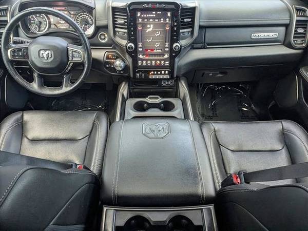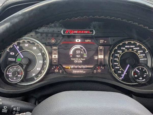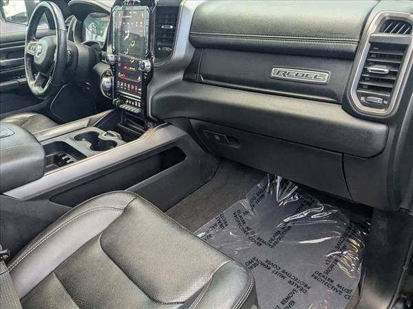 * Rebel Level 2 Equipment Group * Rebel 12 * Radio: Uconnect 12 W/Navigation * 4-Corner Air Suspension * Black; Lux Leather Trimmed Bucket Seats * Dual-Pane Panoramic Sunroof * Engine: 5.7L V8 Hemi Mds Vvt * Multi-Function Tailgate * Safety/Convenience Group * Comfort/Convenience Group * Panoramic Roof * Blind Spot & Cross Path Detection * Spray In Bedliner * Black Appearance Package * Leather Seats * Parksense Front/Rear Park Assist W/Stop * Navigation System * Trailer Brake Control * Remote Start System * Rear Wheelhouse Liners * Diamond Black Crystal Pearlcoat * Lane Keeping Assist * Keyless Start * Diamond Black Crystal Pearlcoat * Gvwr: 7;100 Lbs * Monotone Paint * Transmission: 8-Speed Automatic (8Hp75) * Wheels: 18" X 8.0" Gloss BlackDominate Every Road: 2020 Ram 1500 Rebel 65,410 Miles, 1 Owner, Clean Carfax Power. Precision. Presence. This 2020 Ram 1500 Rebel Crew Cab 4x4 doesnt just moveyou command every mile. Wrapped in Diamond Black Crystal Pearl-Coat with luxury leather-trimmed bucket seats , its a truck that demands attention and rewards every adventure. Under the hood: a 5.7L V8 HEMI MDS VVT Engine paired with an 8-speed automatic transmission . Every press of the pedal is pure, unrestrained authority. Every corner, a testament to control and composure. This Rebel isnt just about brute force. From the 4G LTE Wi-Fi hotspot and 19-speaker Harman Kardon audio to adaptive cruise, lane-keep assist, and ParkSense front/rear park assist , it blends comfort, technology, and safety into one commanding package. Add the dual-pane panoramic sunroof, air suspension, spray-in bedliner, and multi-function tailgate , and you have a truck that thrives whether on the highway, off-road trails, or worksite. With 1 meticulous owner and a clean Carfax , this Ram is as reliable as it is thrilling ready for your next conquest. Step in. Start it up. Make the roads yours. Available now at AutoNation Dodge Ram Broadway 5600 S Broadway, Littleton, CO , 720.842.7793 Options at time of OEM production.
