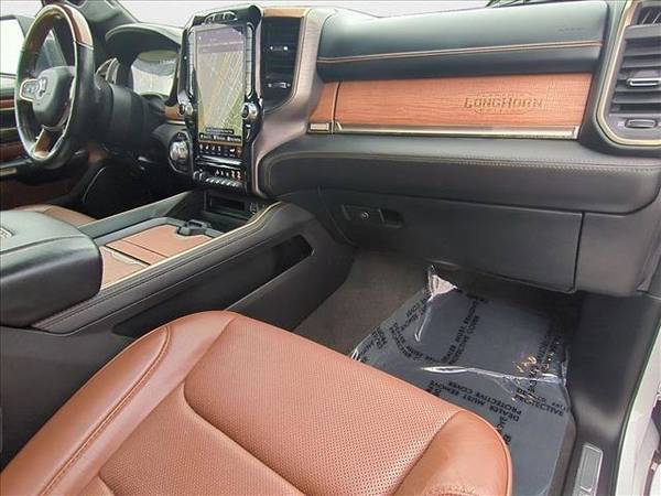 The following items have been reconditioned on this vehicle: new brakes! * Longhorn Level 1 Equipment Group * Engine: 5.7L V8 Hemi Mds Vvt Etorque * 4-Corner Air Suspension * Advanced Safety Group * Off Road Group * E-Locker Rear Axle * Ivory White Tri-Coat Pearlcoat * Leather Seats * Navigation System * 33 Gallon Fuel Tank * Bed Utility Group * Trailer Brake Control * Lower Two Tone Paint * 3.92 Rear Axle Ratio * Lane Keeping Assist * Keyless Start * Cooled Front Seat(S) * Gvwr: 7;100 Lbs * New Saddle/Black; Leather Trimmed Bucket Seats * Radio: Uconnect 12 W/Navigation * Tires: 275/55R20 Owl All-Terrain * Transmission: 8-Speed Automatic (8Hp75) * Walnut Brown Metallic ClearcoatThis vehicle includes a Money-Back Guarantee* and passed our precise inspection process. Best of all the price you see is the price you pay. No haggling. No back and forth. No pressure. And this price is so good it is guaranteed. *Money-Back Guarantee is valid for 5 days or 250 miles, whichever comes first. Subject to certain terms and conditions. See store for details. Some restrictions apply.2020 RAM 1500 LARAMIE LONGHORN 4X4 5.6' Bed Length Accident Avoidance Systems Active Noise Cancellation Active Parking System Adaptive Cruise Control Adaptive Headlights Adjustable Lumbar Support Adjustable Pedals Air Suspension Alloy Shift Knob Alloy Wheels Android Auto Anti-Theft System Apple Carplay Approach Lights Auto Start/Stop Auto-dimming Rearview Mirror Automatic Climate Control Blind Spot Warning Bluetooth Braking Assist Bucket Seats Chrome Grille Chrome Headlight Bezel Connected Car Connected Car Integrated Apps Cooled Seats Cruise Control Curtain Airbags Customizable Instrument Display Driver Assistance Package Dual Exhaust Dual-Zone Climate Control Electronic 4WD Selector Electronic Braking System Electronic Messaging Assistance Electronic Traction Control Emergency Braking Preparation Exterior Chrome Accents Fog Lights Front Bucket Seats Full Size Spare Tire Heated Seats Heated Side Mirrors Heated Steering Wheel Leather Seats Leather Steering Wheel Leather Trimmed Seats Lift Assist Tailgate Memorized Seat Settings Multi-Function Display Navigation System Off-Road Package On Demand 4WD Paddle Shifter Parking Sensors Pickup Bed Liner Power Adjustable Pedals Power Liftgate Power Locking Tailgate Power Running Boards Power Seats Power Sliding Rear Window Premium Sound System Push-Button Start Radio Data System Real Time Traffic Rear Cooled Seats Rear Cross Traffic Alert Rear Headrests Rear Privacy Glass Rearview Camera Regenerative Braking System Remote Engine Start Removable Tailgate Running Boards Satellite Radio Self Leveling Suspension Side Airbags Specialty Tires Stability Control Steering Wheel Mounted Controls Surround View Camera Tire Pressure Monitoring System Tow Hooks Trailer Brake Controller Trailer Hitch Trailer Wiring Turn Signal Mirrors USB Audio Input Voice Activated Commands Wi-Fi Compatible Wireless Charging Station Wood Steering Wheel