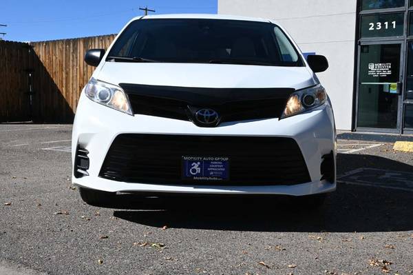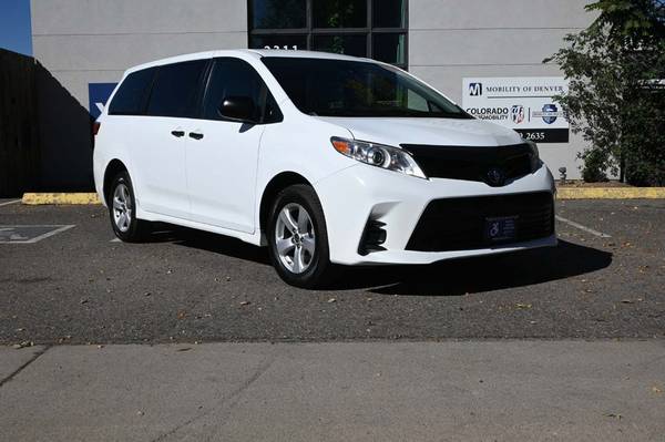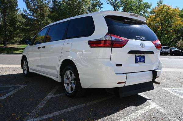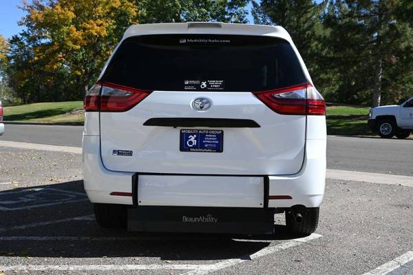 *NON-ACTUAL MILES ON THE TITLE* Door Opening Height: 56" and width: 32". 2020 Toyota Sienna L BraunAbility Manual Rear Entry Short Cut rampvan for sale. Built by Braun, this disability equipped handicap wheelchair accessible ramp van combines the power and comfort of the Sienna with the ease-of-use of a rear-entry van. This ADA compliant 56 inch rear opening height clearance includes a low maintenance multi-position 32 inch wide ramp with 1000 lb load capacity. The short channel cut lowered floor with commercial flooring means you get more seating with the intact reclinable middle row as well as a double, folding 3rd row gray vinyl bench seat. This van comfortably seats 7 passengers or 5+1 wheelchair user and also comes with a set of Q'Straint retracting wheelchair tie-down straps, and floor rails. This packed with Toyota's newest safety features like Daytime Running Lights, Blind Spot Mirrors, backup camera, lane departure warning, pre-collision camera, and includes: White exterior, gray interior with cloth front and gray leather rear seats, Alloy Wheels, tires have 80% tread life, 3-Zone Climate Control, AM/FM/CD/ sound system, commercial back-up alarm, power windows, mirrors, and locks, key-less remote, cruise control, and stability control, front, side and overhead air bags, 4-wheel ABS system, transmission interlock, smooth and efficient 3.5L 6-cylinder Toyota motor with front wheel drive, and much more. This vehicle is offered for sale by Mobility Auto Group. With two Colorado locations at: 1500 W Campus Drive, Littleton CO 80120 & 2311 S Platte River Drive, Denver CO 80223. We don't charge a Dealer Handling Fee and are your mobility one-stop-shop. Just give us a call as we offer it all: sales, service, parts, and rentals. Open M-F 9am - 6pm. Sat by appt. Call (844) 289-2635.