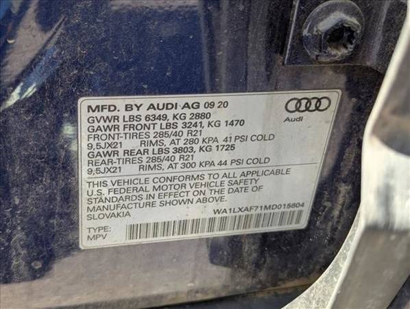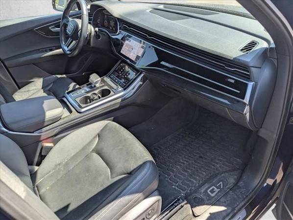 * Panoramic Roof * Navarra Blue Metallic * Leather Seats * Navigation System * 3rd Row Seat * Keyless Start * Rear Spoiler * Black; Leather Seating SurfacesCheck out this pre-owned 2021 Audi Q7 we recently got in. This Audi includes: NAVARRA BLUE METALLIC*Note - For third party subscriptions or services, please contact the dealer for more information.*The Audi Q7 Premium offers a fair amount of utility thanks to its advanced features and unique styling. It's also quite sporty, and injects an ample amount of handling chutzpah into the ridin'-high body of a family-friendly SUV. Quality and prestige abound with this Audi Q7 Premium.You'll love the feel of AWD in this 2021 Audi Q7. It provides a perfect balance of handling power and control in virtually every driving condition.