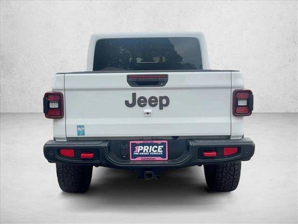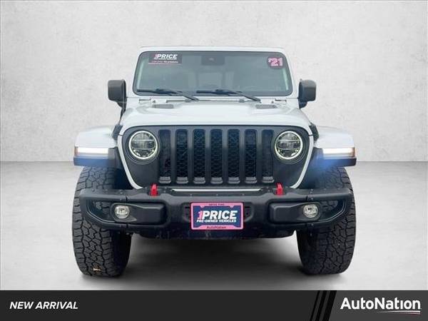 * Body Color 3-Piece Hard Top * Transmission: 8-Speed Automatic (850Re) * 8.4" Radio & Premium Audio Group * Black; Leather Trimmed Bucket Seats * Led Lighting Group * Alpine Premium Audio System * Cold Weather Group * Safety Group * Steel Front Bumper * Advanced Safety Group * Body Color Fender Flares (2-Piece) * Remote Proximity Keyless Entry * Mopar Hardtop Headliner * Trailer Tow Package * Leather Seats * Remote Start System * Navigation System * Auxiliary Switch Group * Bluetooth Wireless Speaker * Mopar Satin Black Grille * Tires: Lt285/70R17C Bsw M/T * Mopar All-Weather Floor Mats * Mopar Grab Handle Kit * Keyless Start * Convertible Hardtop * 4.10 Rear Axle Ratio * Bright White Clearcoat * Engine: 3.6L V6 24V Vvt Upg I W/Ess * Gvwr: 6;250 Lbs W/Max Tow Package * Radio: Uconnect 4C Nav W/8.4" Display * Redical Instrument Panel Bezels * Wheels: 17" X 7.5" Granite Crystal AluminumThis vehicle includes a Money-Back Guarantee* and passed our precise inspection process. Best of all the price you see is the price you pay. No haggling. No back and forth. No pressure. And this price is so good it is guaranteed. *Money-Back Guarantee is valid for 5 days or 250 miles, whichever comes first. Subject to certain terms and conditions. See store for details. Some restrictions apply.FULLY LOADED / SUPER CLEAN! This outstanding example of a 2021 Jeep Gladiator Rubicon is offered by AutoNation Chrysler Jeep West. This Jeep includes: ENGINE: 3.6L V6 24V VVT UPG V6 Cylinder Engine Gasoline Fuel REMOTE START SYSTEM Remote Engine Start TRAILER TOW PACKAGE Back-Up Camera Tow Hitch BODY COLOR 3-PIECE HARD TOP Targa Roof Sliding Rear Window Rear Defrost Convertible Hardtop LED LIGHTING GROUP Fog Lamps Daytime Running Lights SAFETY GROUP Rear Parking Aid Blind Spot Monitor Cross-Traffic Alert REMOTE PROXIMITY KEYLESS ENTRY Keyless Start Power Door Locks Keyless Entry COLD WEATHER GROUP Heated Steering Wheel Heated Front Seat(s) BLACK, LEATHER TRIMMED BUCKET SEATS Leather Seats Bucket Seats RADIO: UCONNECT 4C NAV HD Radio Navigation System AM/FM Stereo Satellite Radio Bluetooth Connection Requires Subscription 4:1 ROCK-TRAC HD FULL TIME 4WD SYSTEM MOPAR HARD TRI-FOLD TONNEAU COVER (DISC) Pickup Bed Tonneau Cover ALPINE PREMIUM AUDIO SYSTEM Premium Sound System ADVANCED SAFETY GROUP Brake Assist 8.4 RADIO HD Radio Navigation System Auto-Dimming Rearview Mirror AM/FM Stereo Satellite Radio Bluetooth Connection Premium Sound System Telematics Requires Subscription *Note - For third party subscriptions or services, please contact the dealer for more information.* Enjoy an extra level of calm when purchasing this Jeep Gladiator Rubicon, it's a CARFAX One-Owner. The CARFAX report shows everything you need to know to confidently make your pre-owned purchase. Today's luxury vehicle is not just about opulence. It's about a perfect balance of performance, comfort and attention to detail. This 2021 Jeep Gladiator Rubicon is the perfect example of the modern luxury. With 4WD, you can take this 2021 Jeep Gladiator Rubicon to places roads don't go. It's all about the adventure and getting the most enjoyment out of your new ride. You can tell this 2021 Jeep Gladiator has been pampered by the fact that it has less than 39,557mi and appears with a showroom shine. Added comfort with contemporary style is the leather interior to heighten the quality and craftsmanship for the Jeep Gladiator Rubicon. Time is money, and thanks to the navigation system on this Jeep Gladiator, you'll be spending a whole lot less time getting to your destination. Adjectives like impeccable, spotless, and immaculate can be used to describe how clean this Jeep Gladiator Rubicon is, causing it to feel more like a new vehicle than a pre-owned one. This Jeep Gladiator Rubicon comes standard with features that are essential in the 21st Century. However, Jeep decided to take it one step further and add a handful of quintessential options that will undoubtedly add to this vehicle's quality and value.
